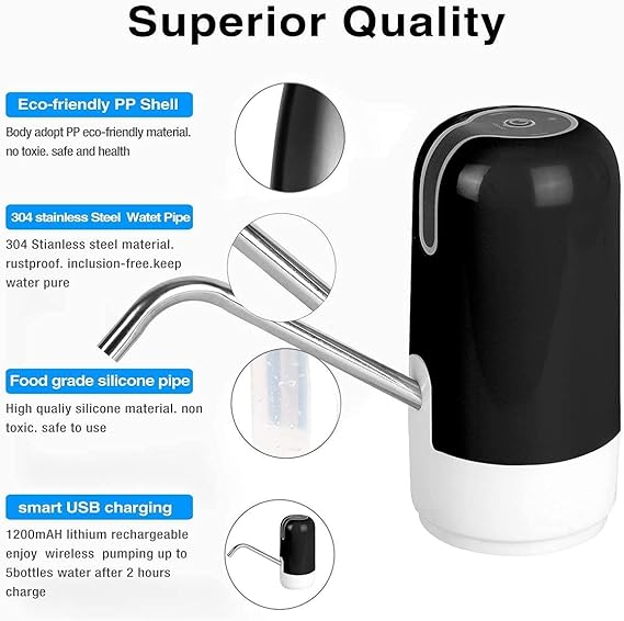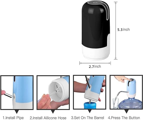Water bottle pump dispenser. Fits standard 2-5 Gallon water bottles. Electric water pump with USB charging cable.