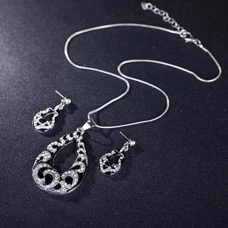 Crystal Chain & Pendant Necklace W/ Earrings Jewelry Set
