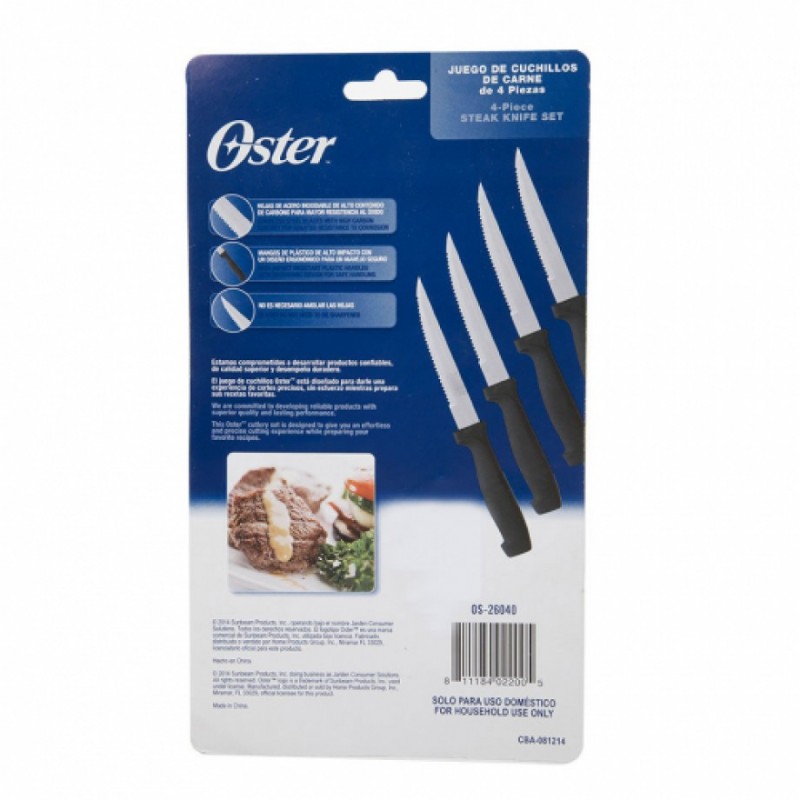 Manufactured from high quality stainless steel with precision stamped construction for durability across the entire length of the knife. The knives are full tang for balance and strength attached to comfortable Bake Lite satin finish and black handle.
